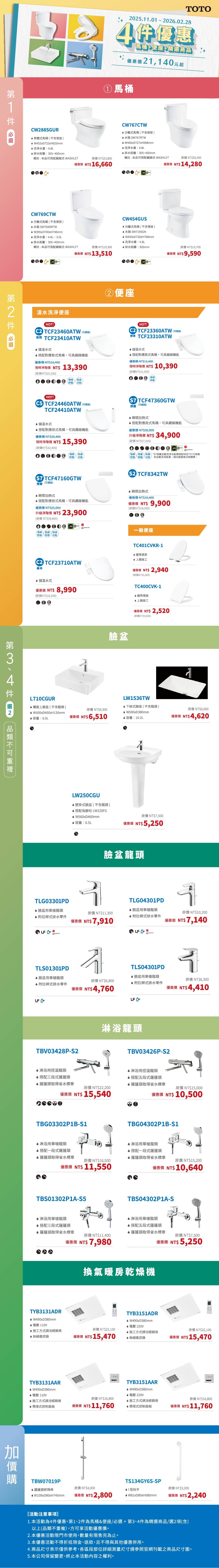 2025 TOTO 馬桶+便座+精選商品4件優惠