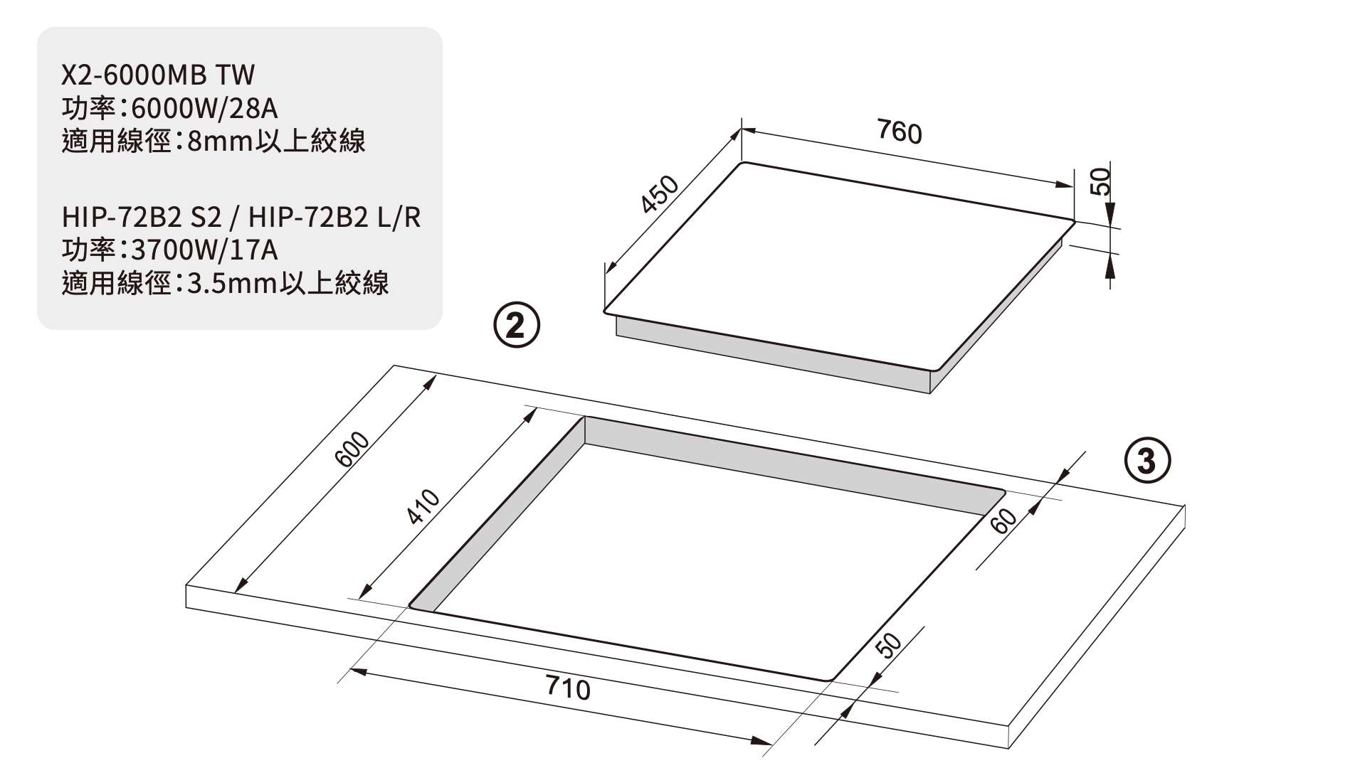 機體尺寸:寬760 / 深450 / 高55mm (內含電源盒高)
