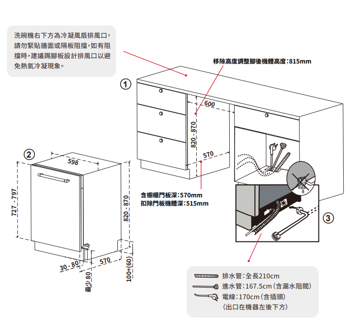 安裝尺寸:高820~870 / 寬600 / 深570mm