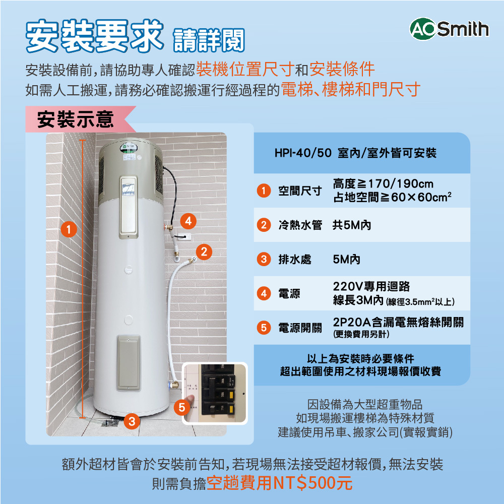 • 防水型戶外設計熱泵熱水器,安全放心