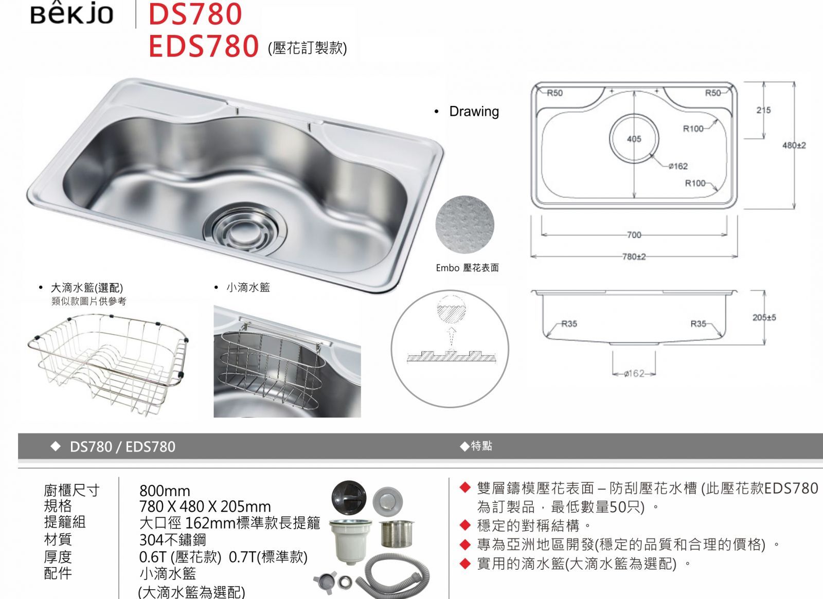 Bekjo 不鏽鋼水槽(78x48cm) DS780