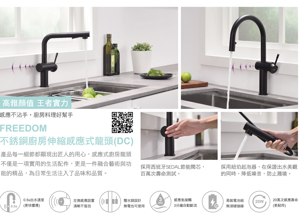 BOSS 不鏽鋼伸縮廚房龍頭 (消光黑) 222012MB