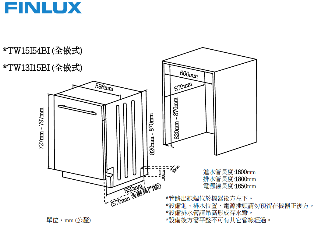 【芬蘭FINLUX】15人份60公分全嵌式洗碗機 TW13I15BI