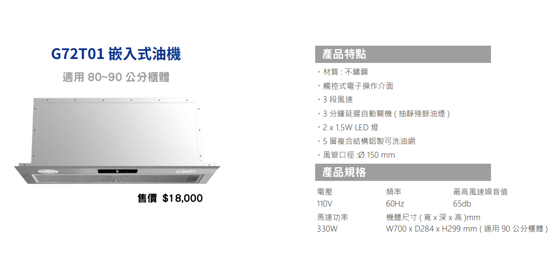 GlemGas 隱藏式排油煙機(80/90cm) G72T01【全省免運費宅配到府】