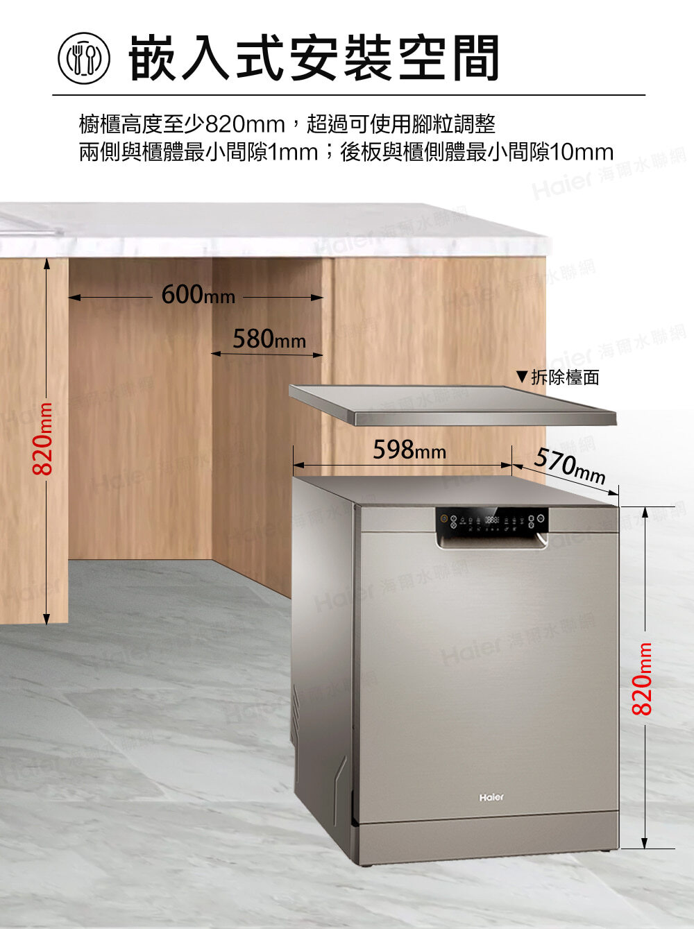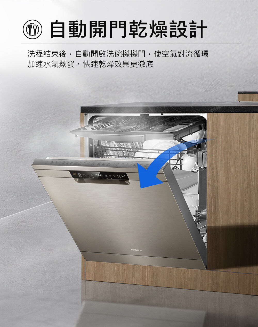 • 自動開門乾燥設計 : 洗淨後自動開啟洗碗機機門,乾燥更徹底