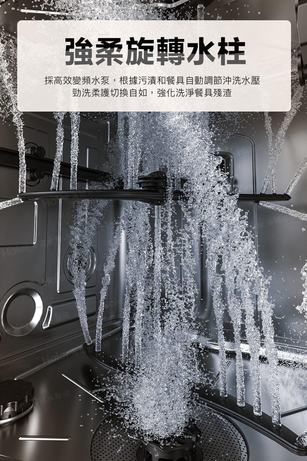 • 強柔旋轉水柱 : 高效變頻水泵,自動調節水壓