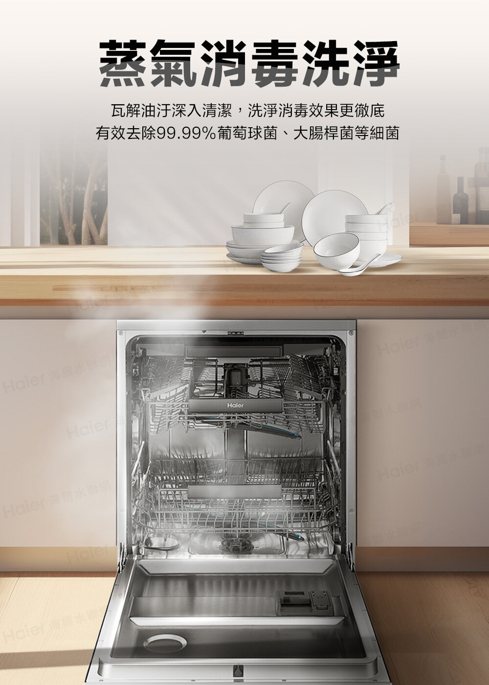 • 自動開門乾燥設計 : 洗淨後自動開啟洗碗機機門,乾燥更徹底
