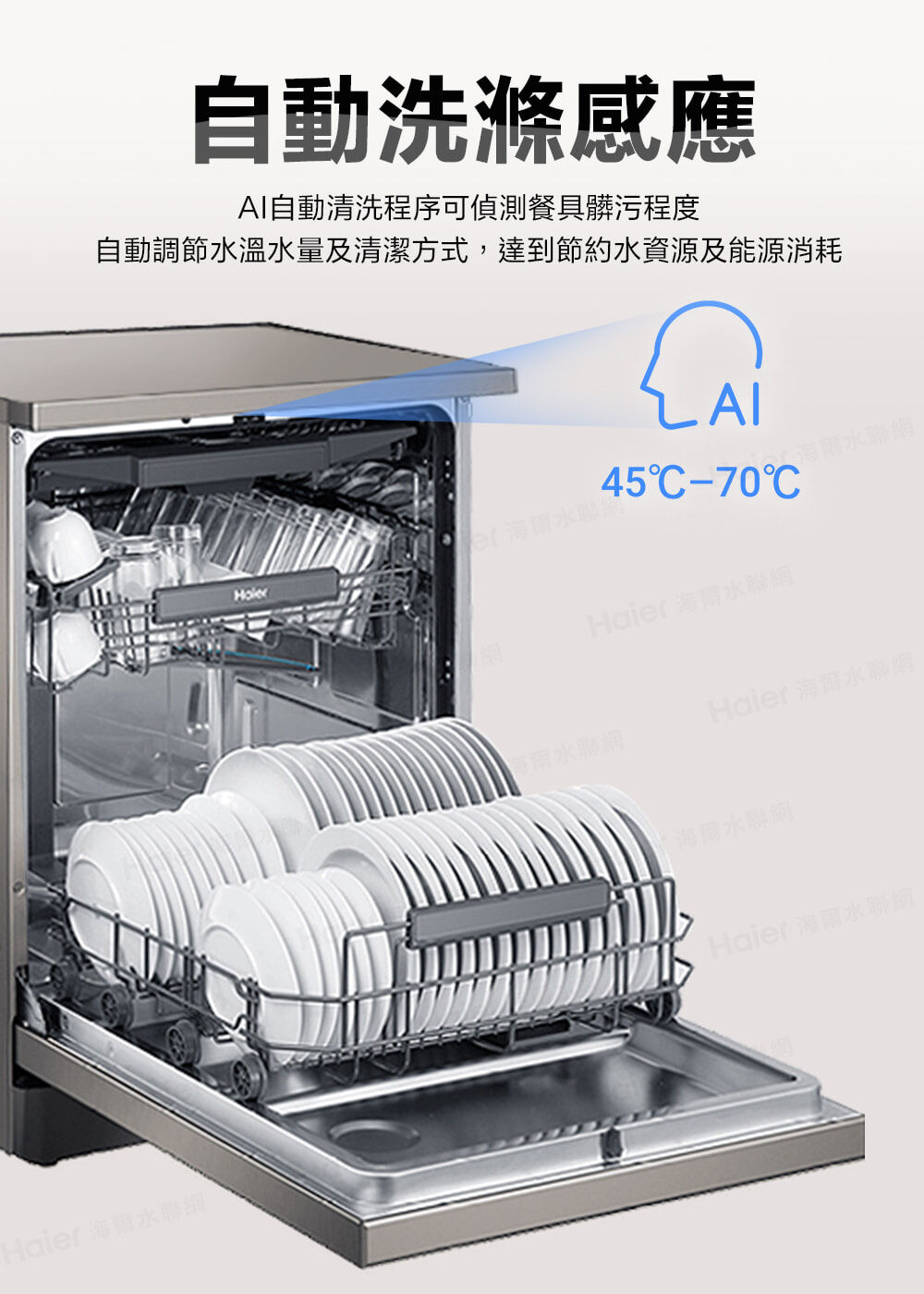• 自動洗滌感應 : 偵測餐具髒污程度,自動調節水溫水量及清潔方式