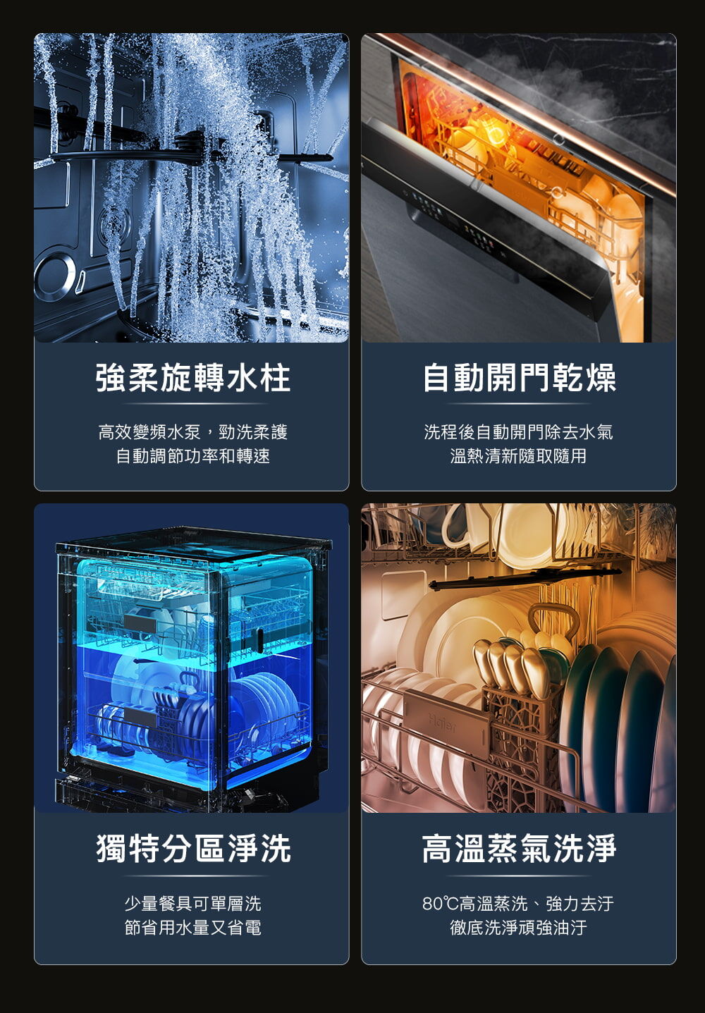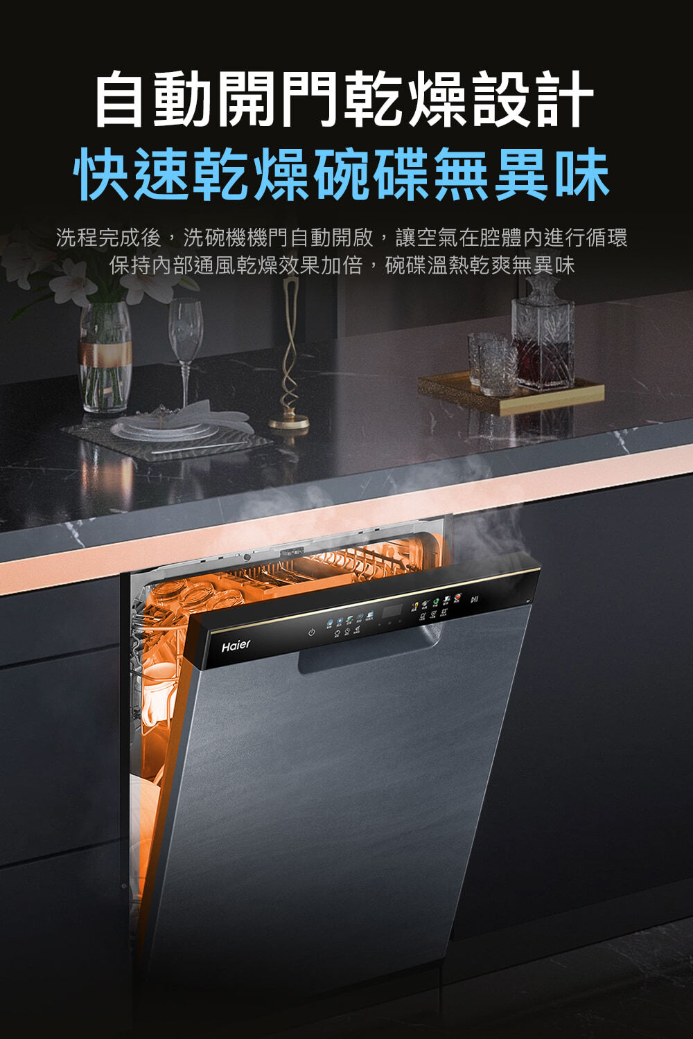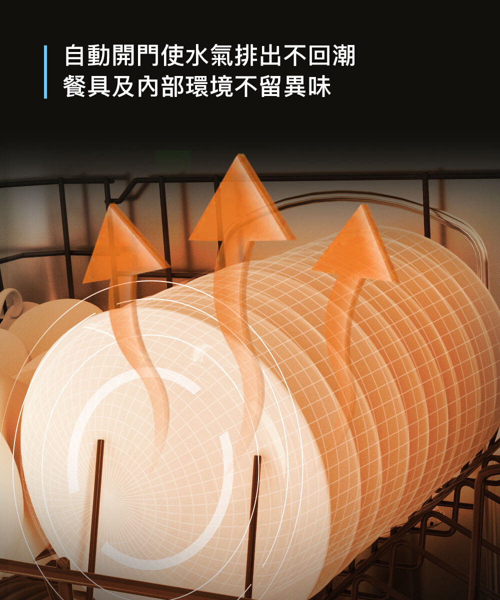 • 自動開門乾燥設計 : 洗淨後自動開啟洗碗機機門,乾燥更徹底