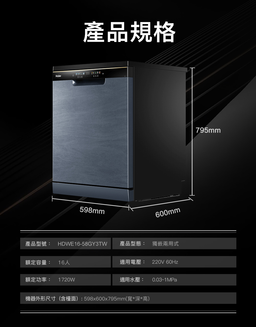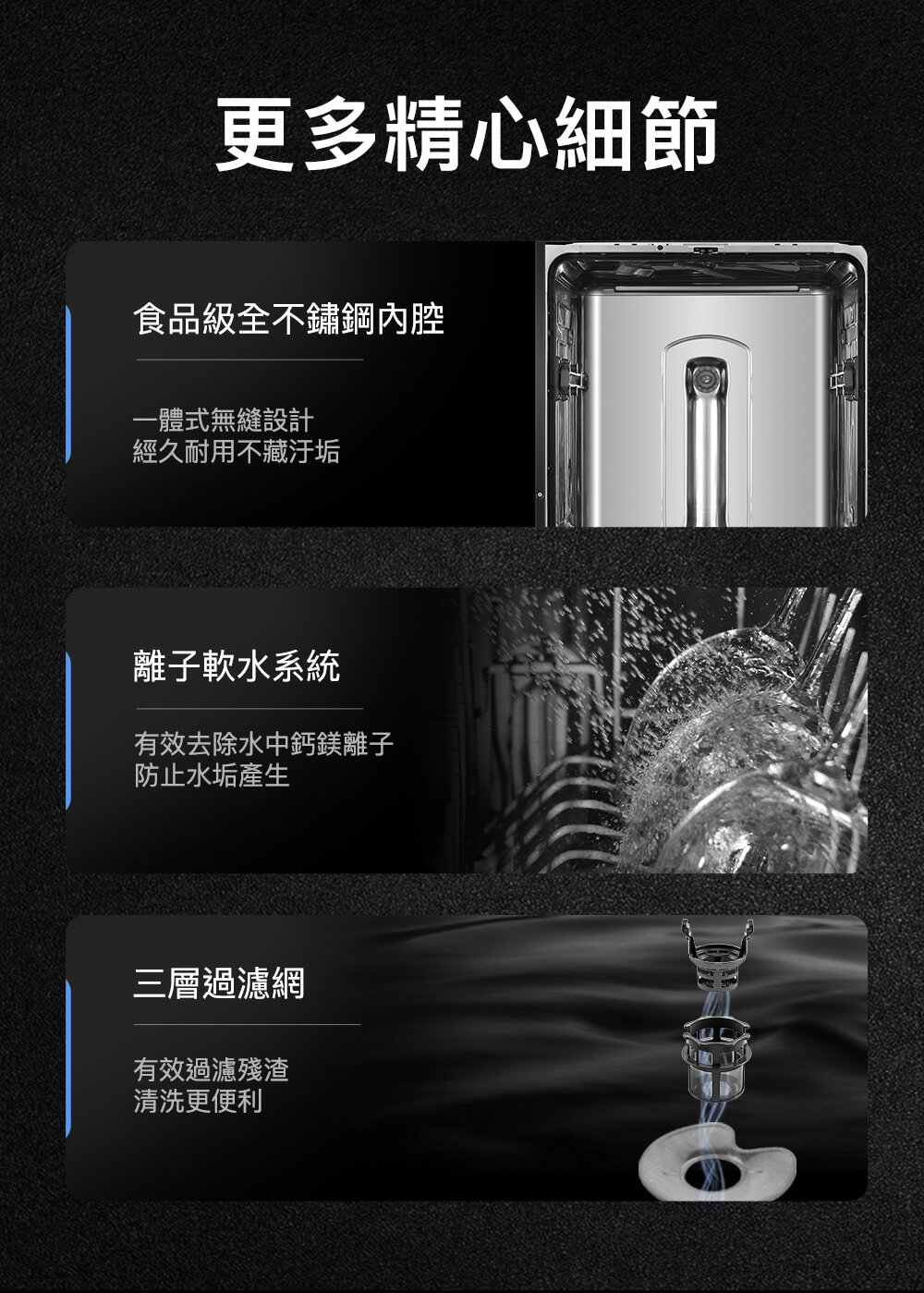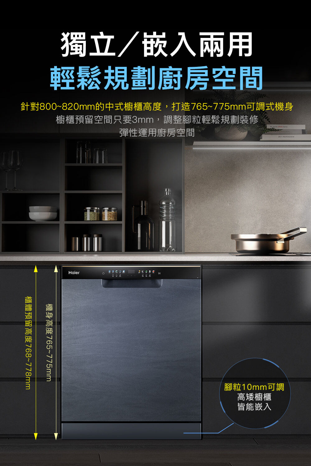 • 自動開門乾燥設計 : 洗淨後自動開啟洗碗機機門,乾燥更徹底