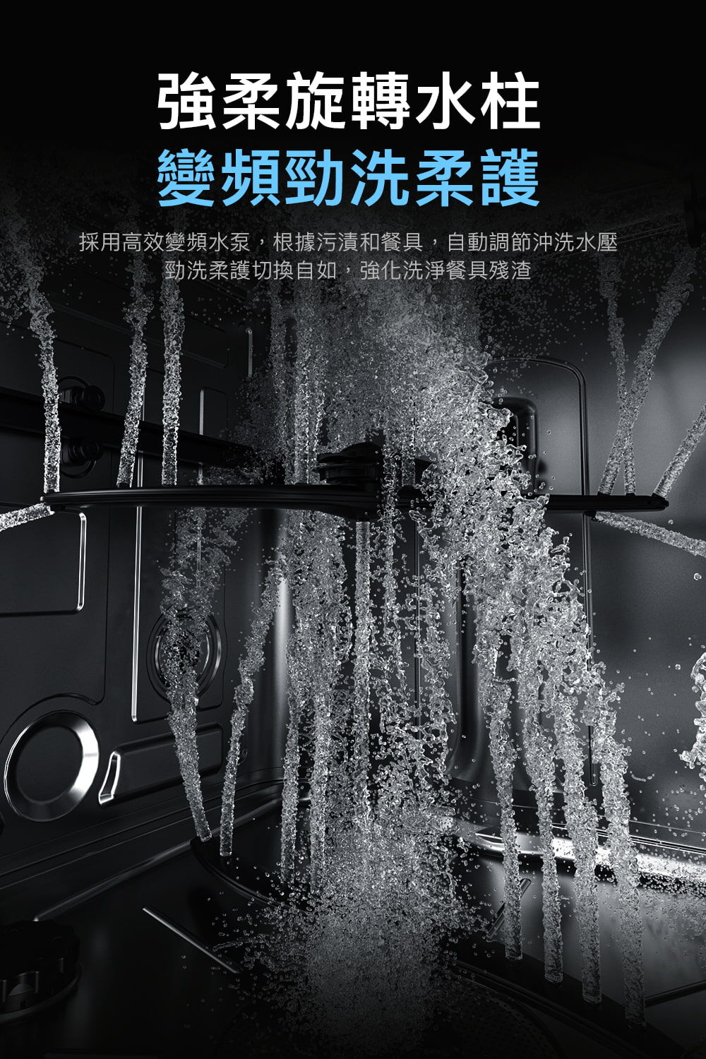 • 強柔旋轉水柱 : 高效變頻水泵,自動調節水壓