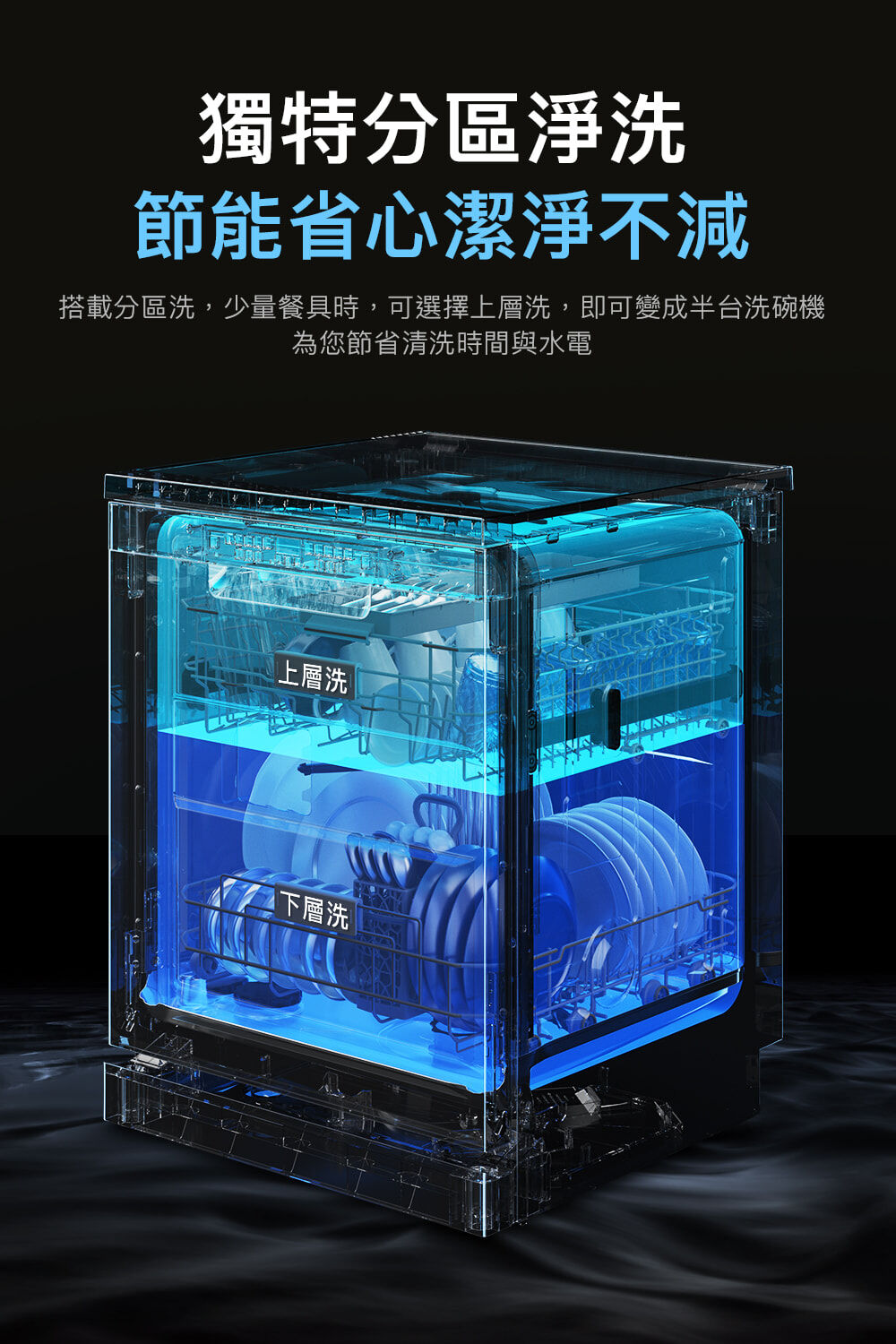 • 獨特分層洗 : 少量餐具可單層清洗,節省用水