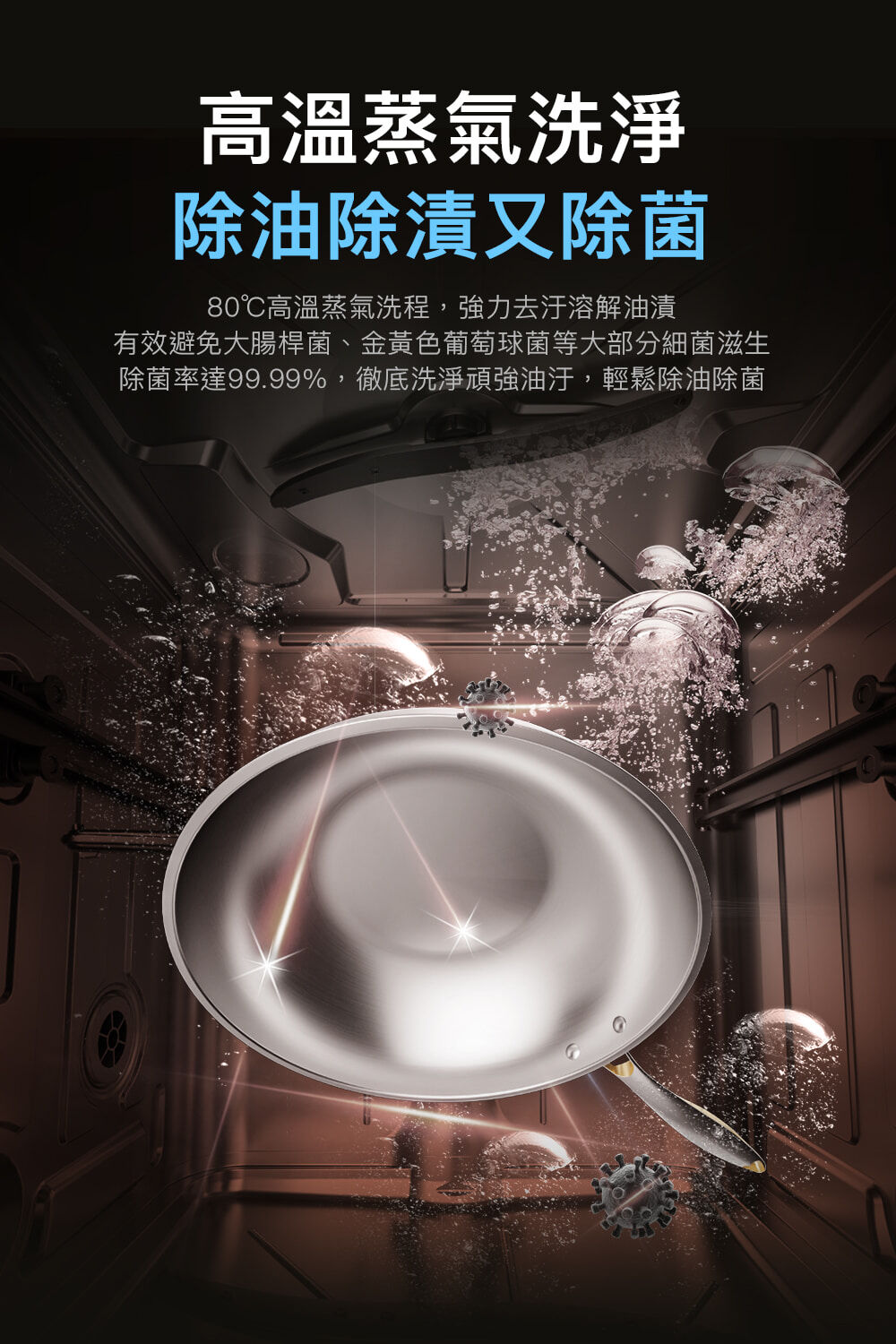 • 高溫蒸氣洗淨 : 80℃高溫蒸洗,瓦解油汙除去99.99%細菌