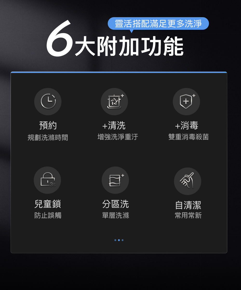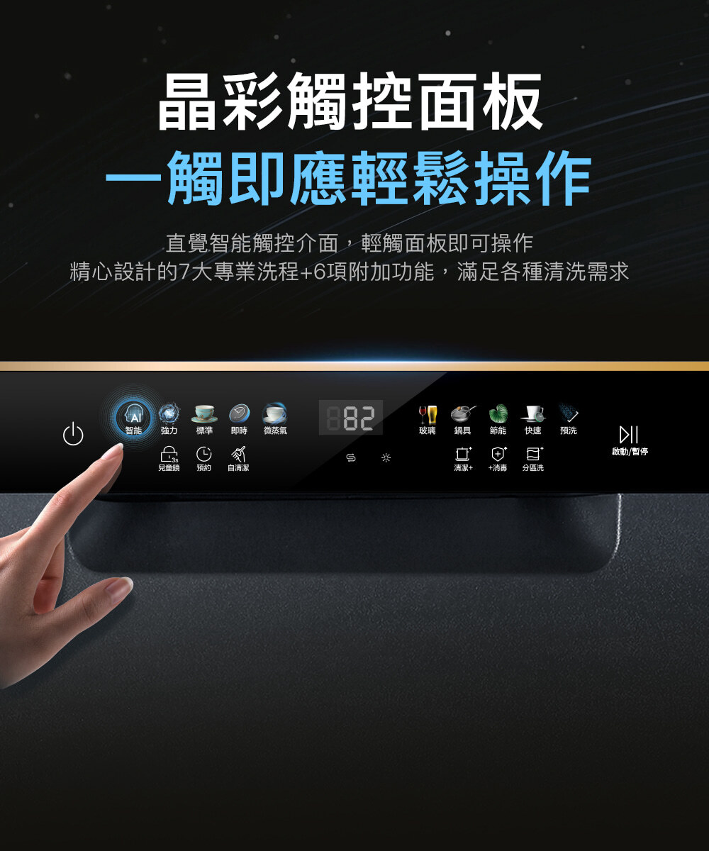 • 晶彩觸控面板 : 直覺式觸控,專屬洗滌程序滿足多種清洗需求