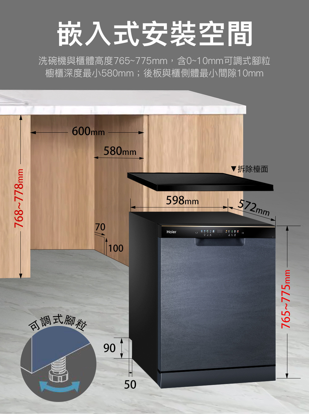 • 獨特嵌入式 : 打造765~775mm可調式機身,更彈性規劃運用空間