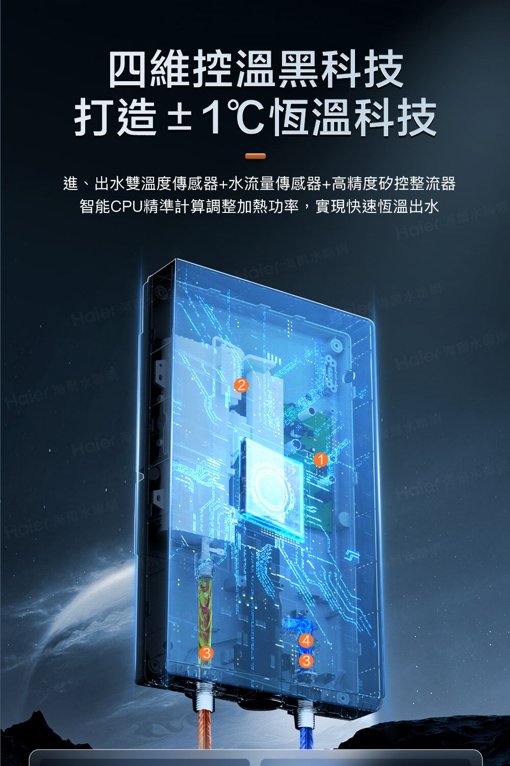 • 四維控溫科技:精準計算調整加熱功率,快速恆溫出水