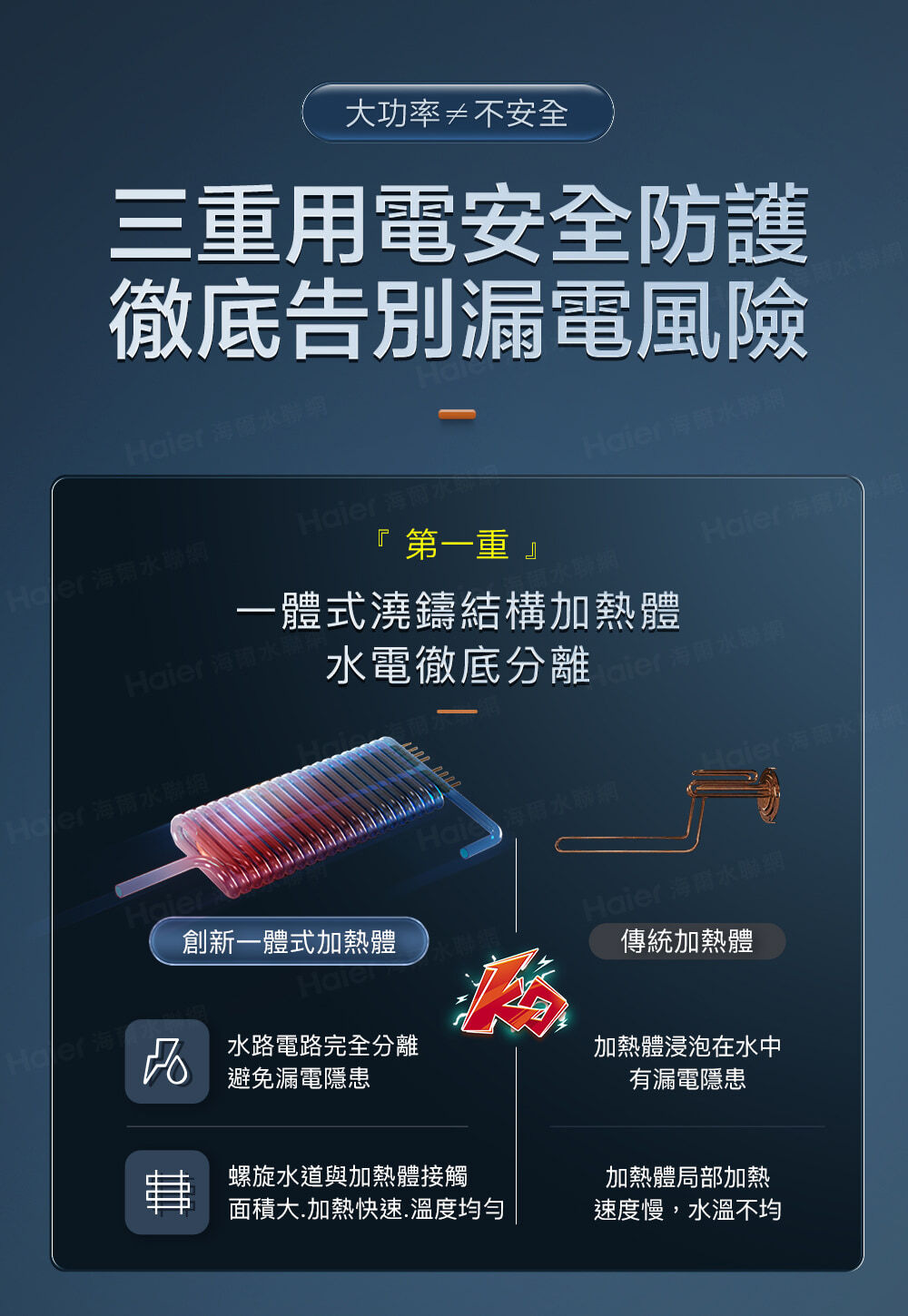 • 一體式澆鑄加熱體:水路電路完全分離,避免漏電危機