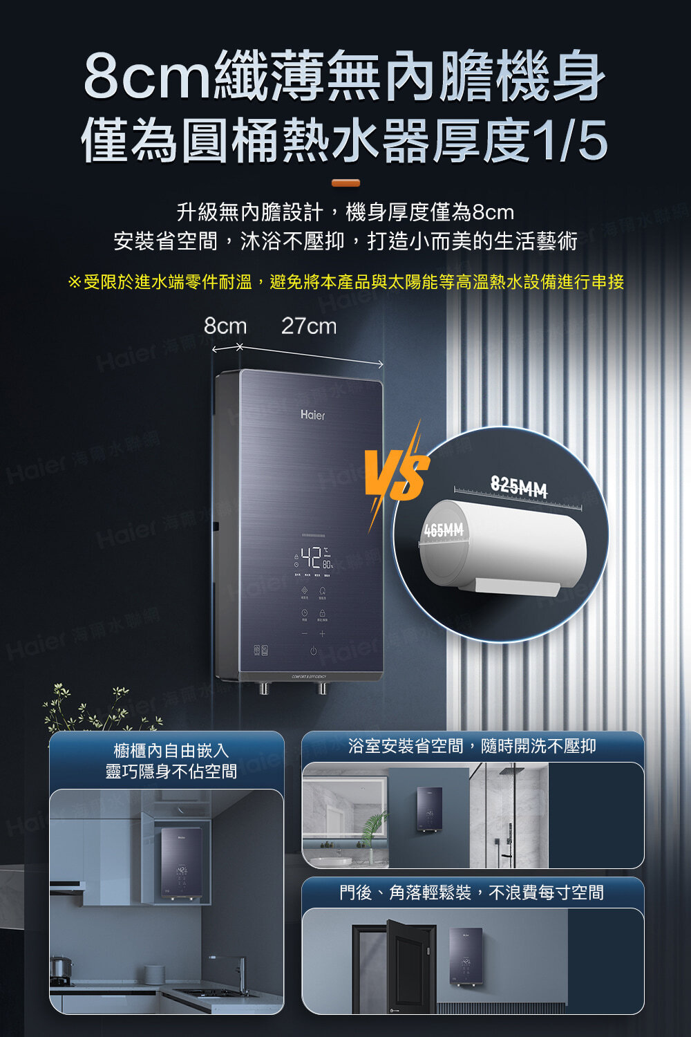 • 纖薄機身:升級無內膽設計,安裝省空間