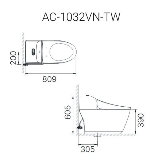 INAX 單體馬桶 AC-1032VN-TW 尺寸圖