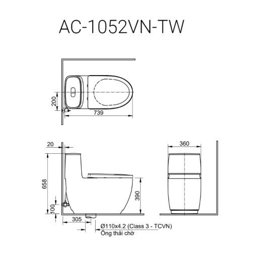 INAX 單體馬桶 AC-1052VN-TW 尺寸圖