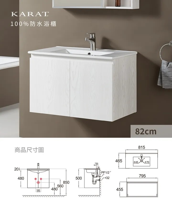 KARAT 米蘭清清防水浴櫃 82cm K-1361_KC-361CH (R/L)