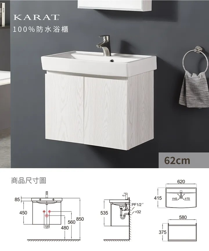 KARAT 米萊清清防水浴櫃 62cm K-1741_KC-741CH