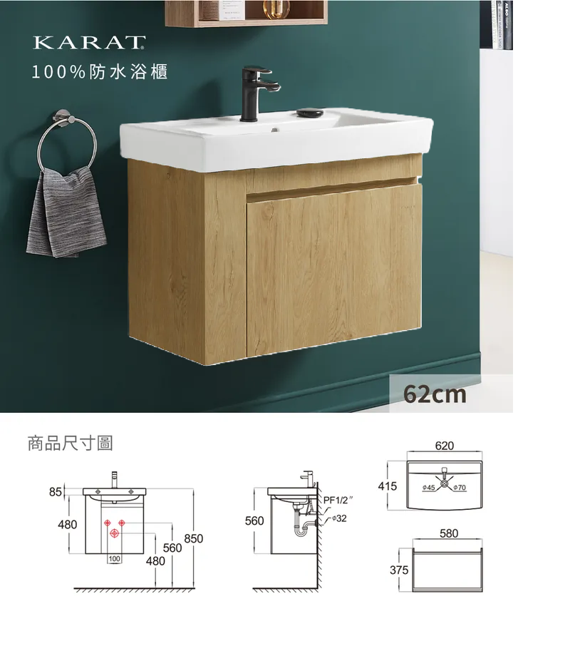 KARAT 米萊松悟防水浴櫃 62cm K-1741_KC-741CLN (R/L)