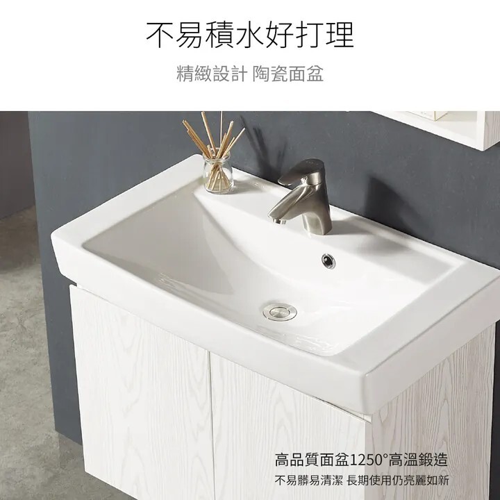 ● 浴櫃材質:實心PVC防水發泡板(白木紋)