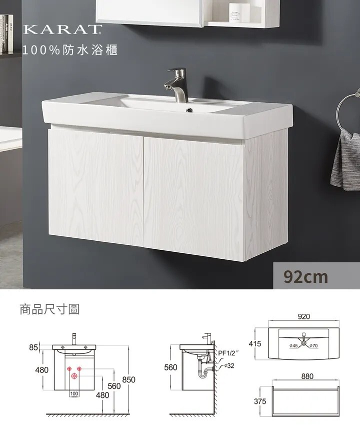 KARAT 米萊清清防水浴櫃 92cm K-1743_KC-743CH