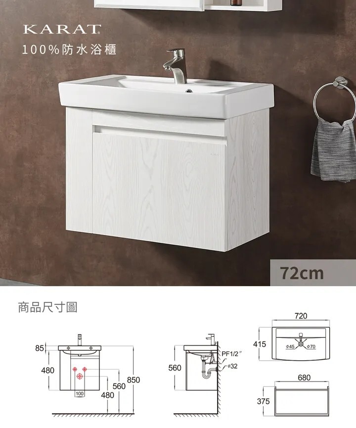 KARAT 米萊清悟防水浴櫃 72cm K-1747_KC-747CHN (R/L)