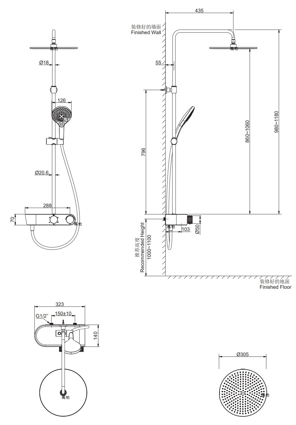 KOHLER Fluence 恆溫三路淋浴柱 K-36420T-9-CP:匠心「光影」設計