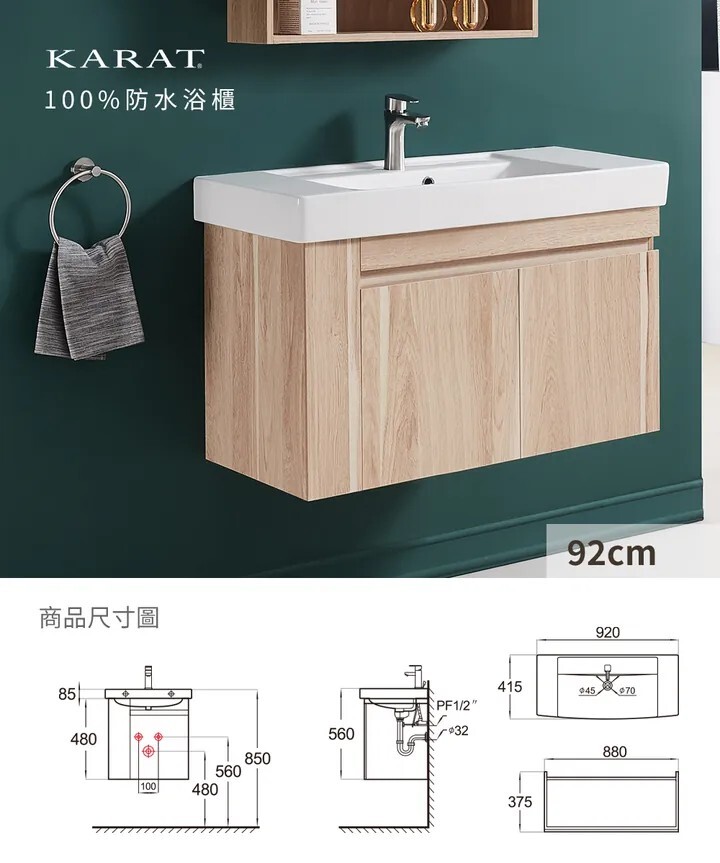 KARAT 米萊悠悟防水浴櫃 92cm K-1743+KC-743CBN (R/L)