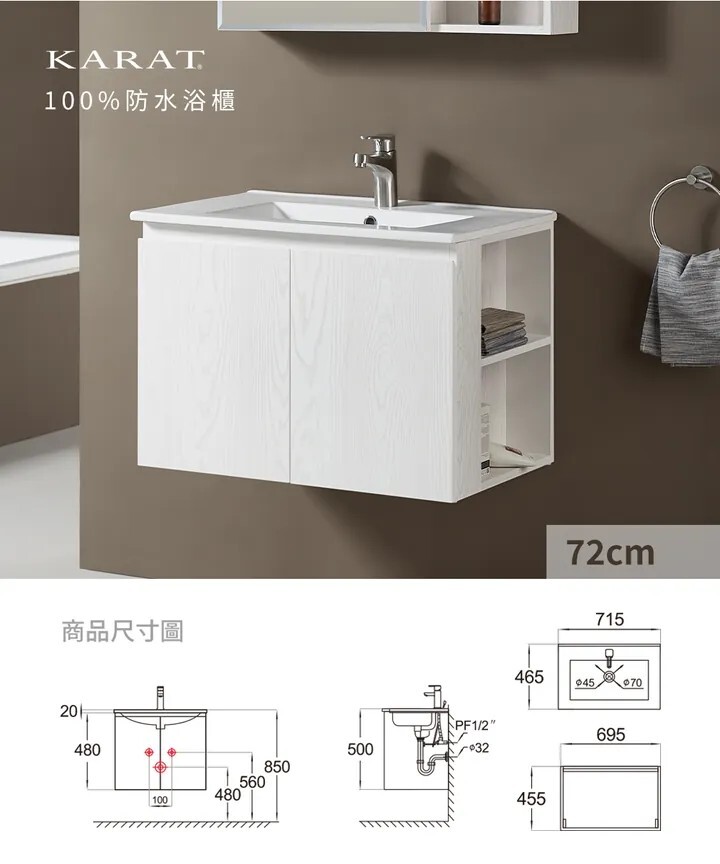KARAT 米蘭清清防水浴櫃 72cm K-1367_KC-367CH (R/L)