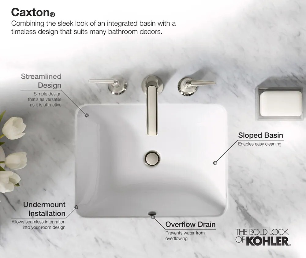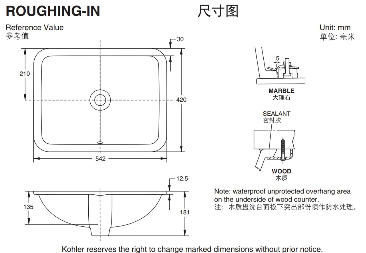 KOHLER Caxton 下嵌檯面盆(48cm) K-20413T-0 尺寸圖