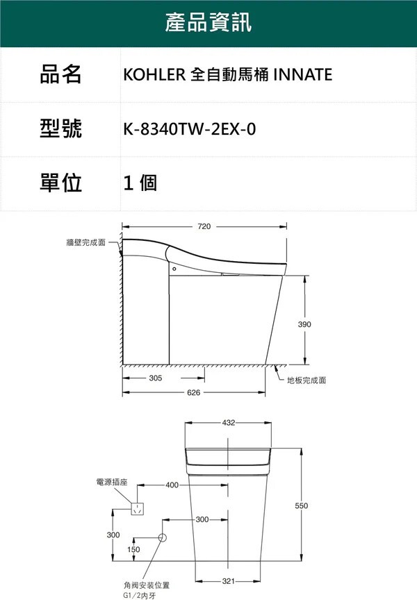 ![]() KOHLER官方網站(請點入) KOHLER Innate 智慧馬桶 K-8340TW-2EX