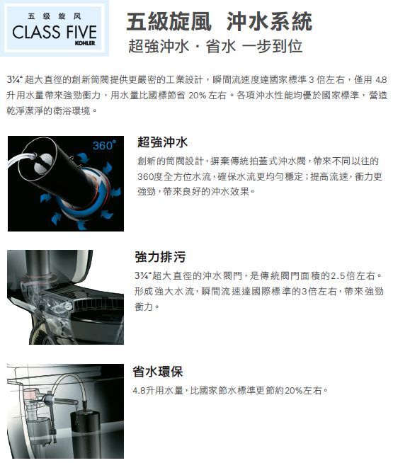 搭載CLASS FIVE+ 五級旋風沖水技術 / 不含馬桶蓋