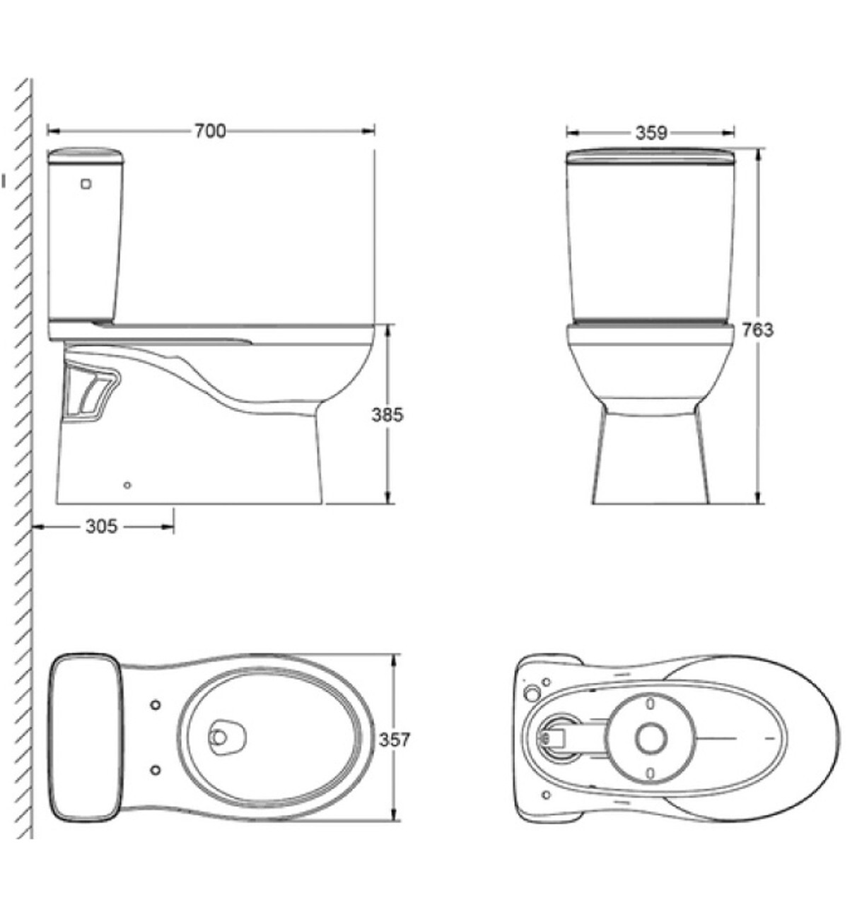 KOHLER New Patio 馬桶 (K-20184不含馬桶蓋) 尺寸圖