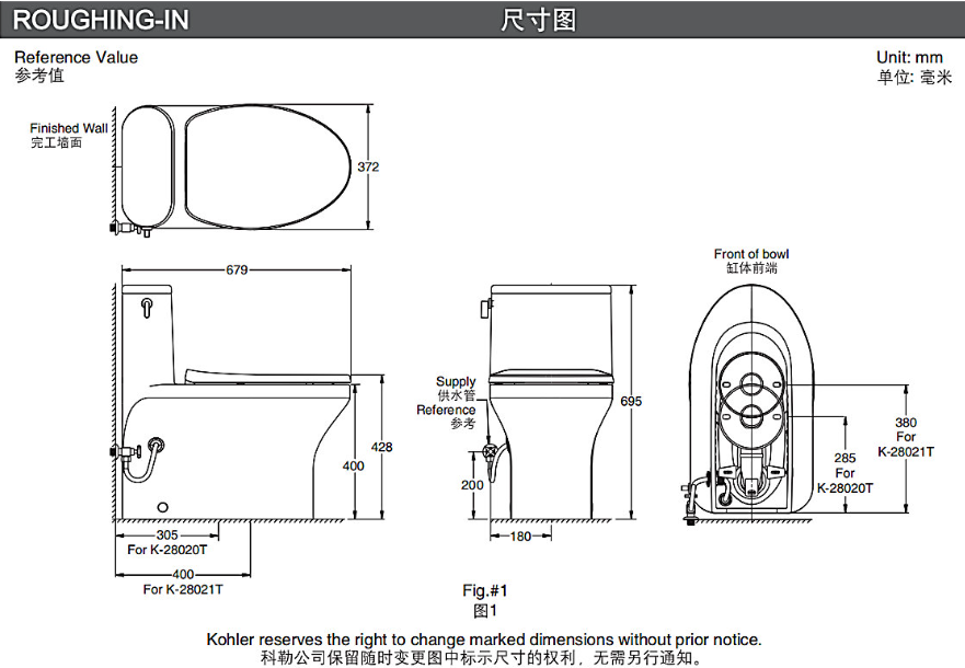 KOHLER Spacity 水漩風單體馬桶 K-28020T-S-0