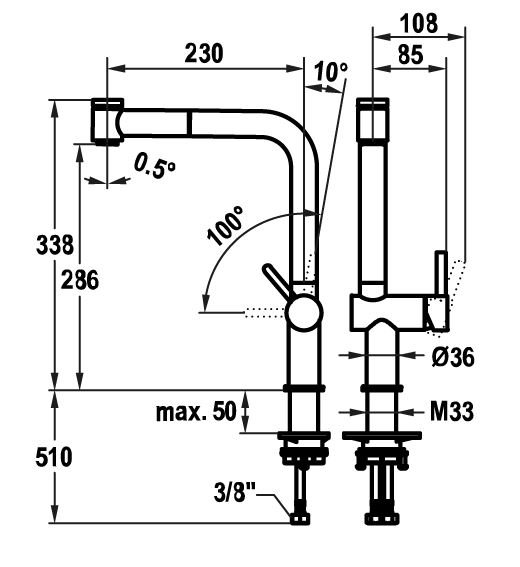 進水管:軟管|檯面開孔:3.5 cm