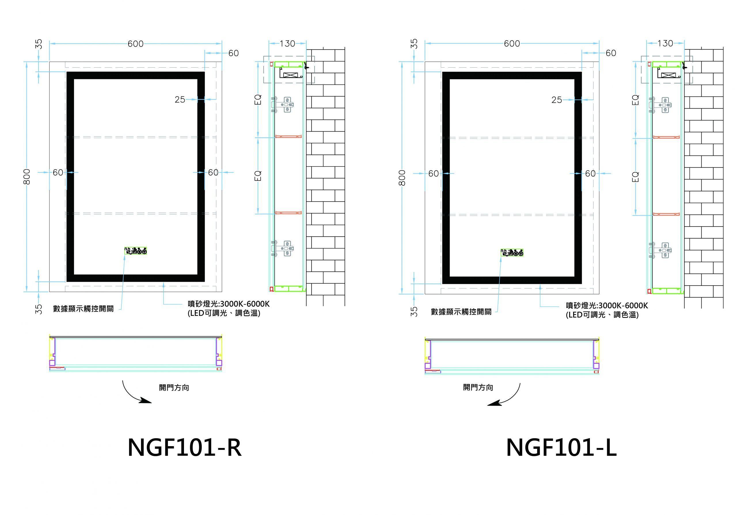 LIPPER 高清智能鋁合金單門鏡櫃-帶時鐘功能(60cm) NGF101-R_NGF101-L