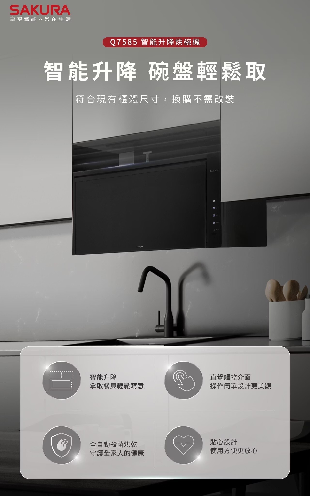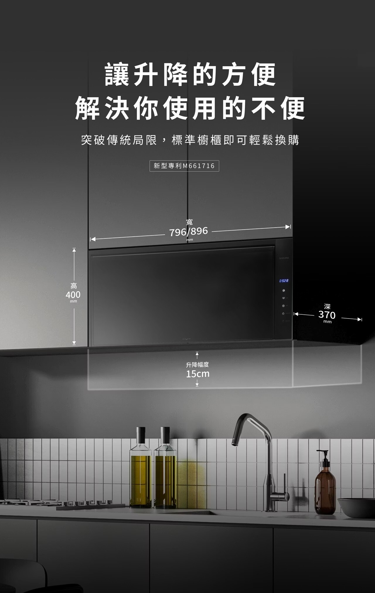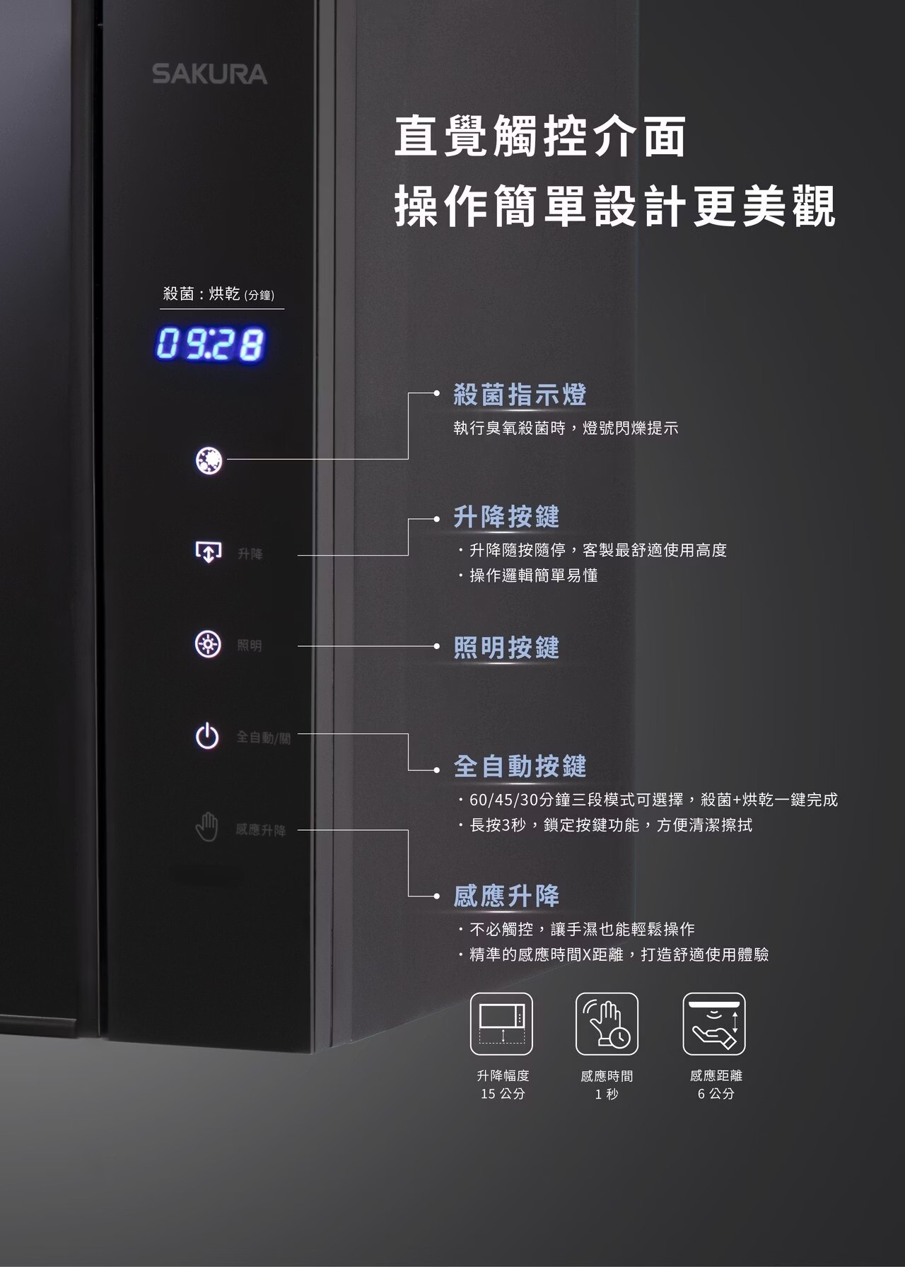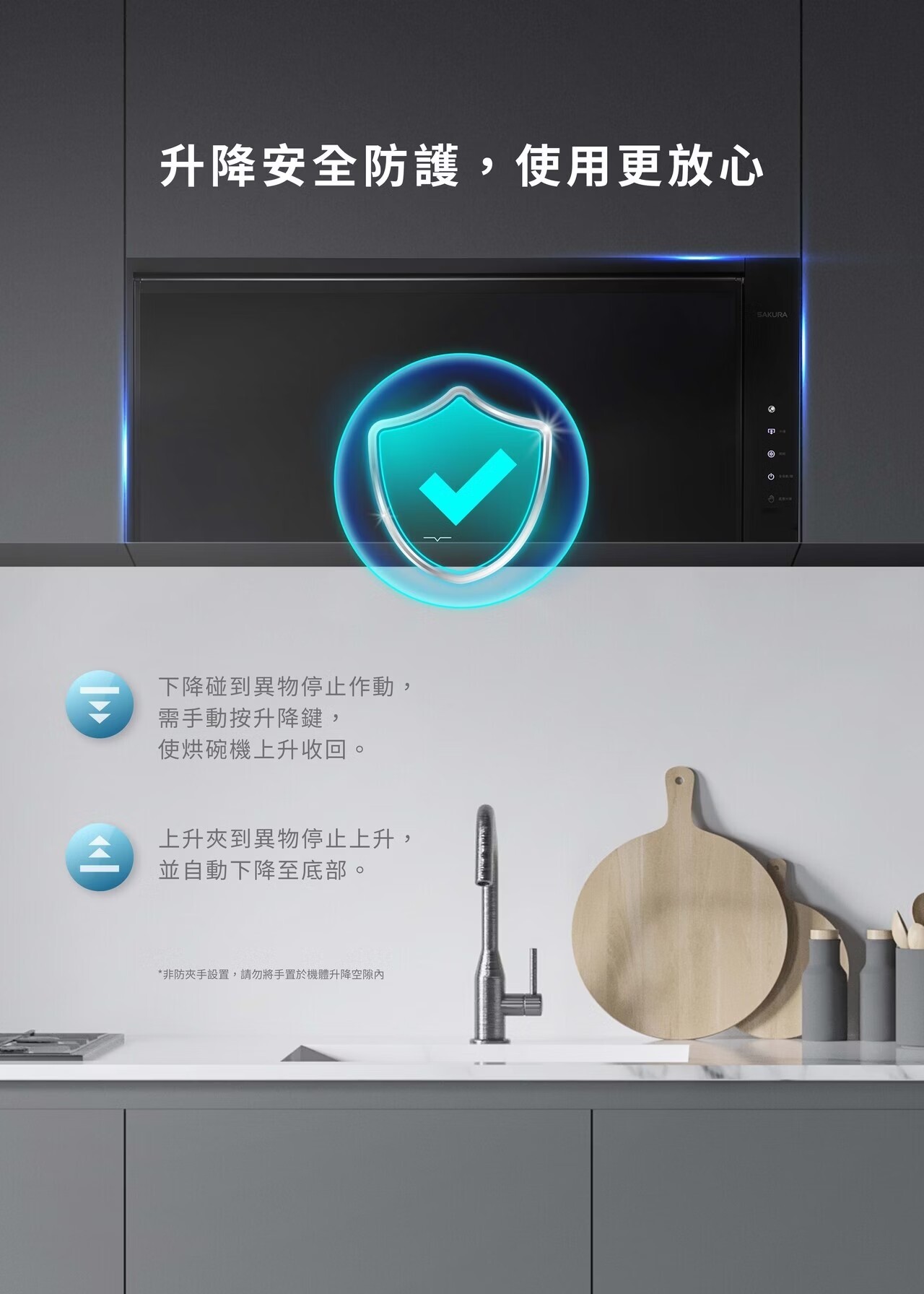 ▪ 智能感應升降,無須觸碰,手濕也能輕鬆啟動