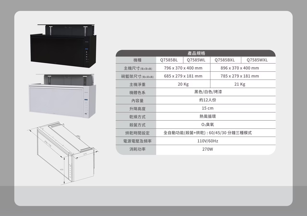 全自動功能(殺菌+烘乾) : 60/45/30 分鐘三種模式 | |