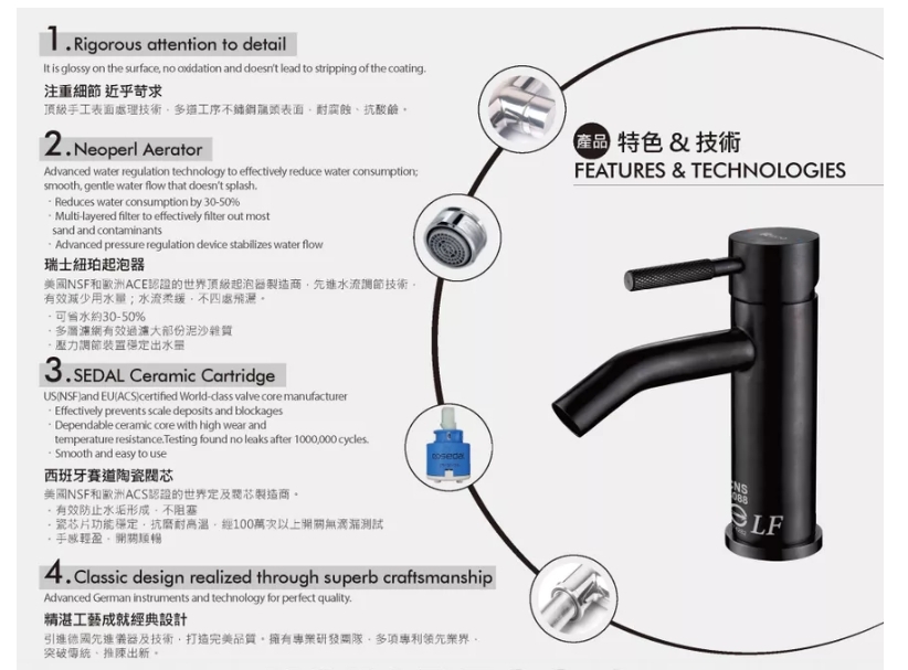 市面上面盆種類多,購買時要注意面盆深度和水龍頭出水嘴的長度或出水角度,先選擇面盆後再選擇水龍頭較不易發生噴濺水的問題,或洗手空間不夠的問題。