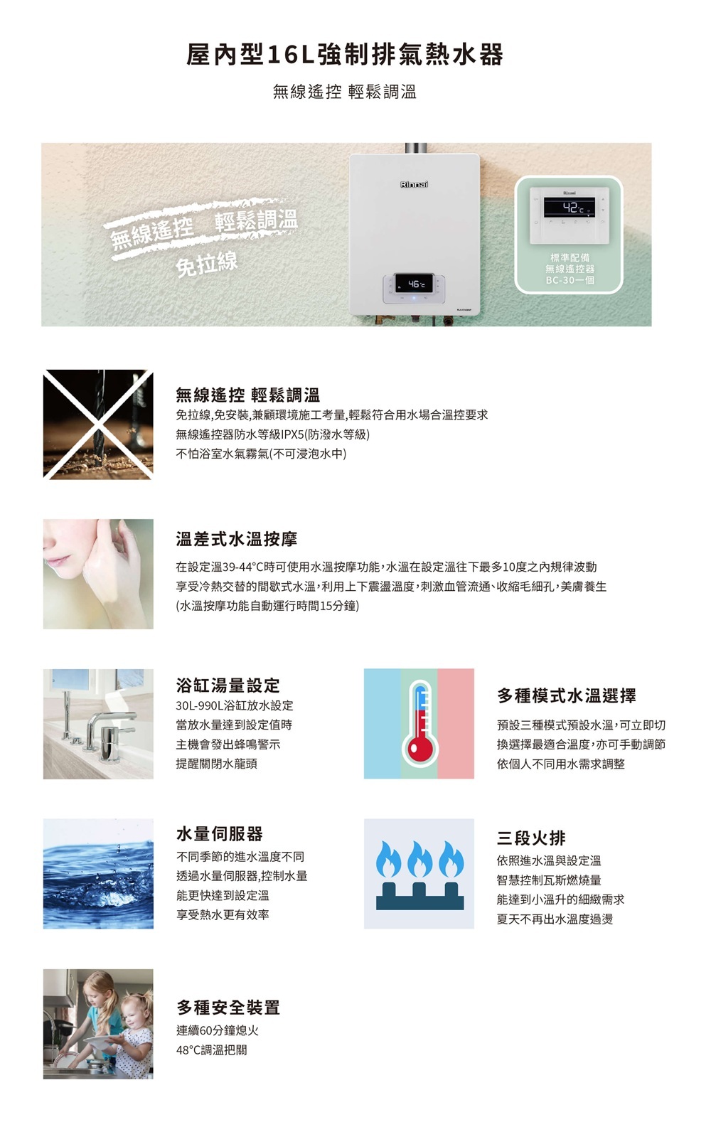 • 35-60 度共16 段水溫設定