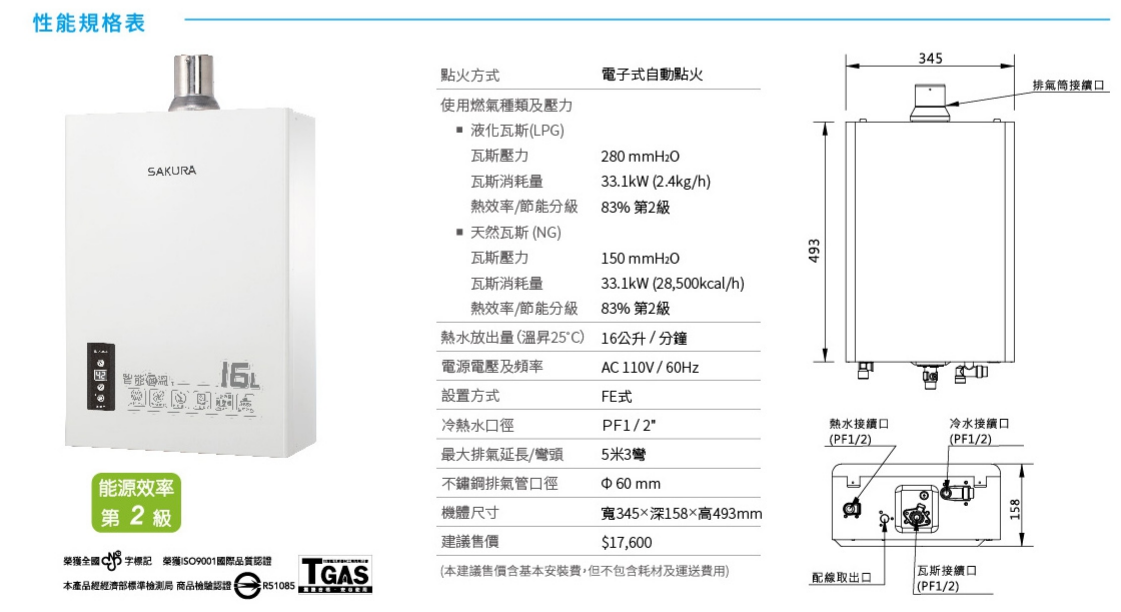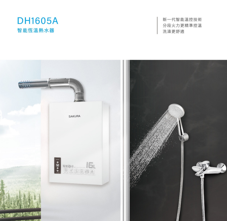 櫻花牌(SAKURA)數位恆溫強排熱水器(16L) DH1605A